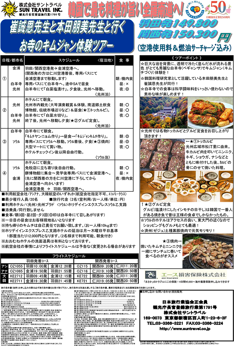 日韓国交正常化50周年を記念し、韓国系旅行会社である「株式会社サントラベル」さんとコラボで、「崔誠恩先生と本田朋美先生と行くお寺のキムジャン体験ツアー」を企画致しました。
