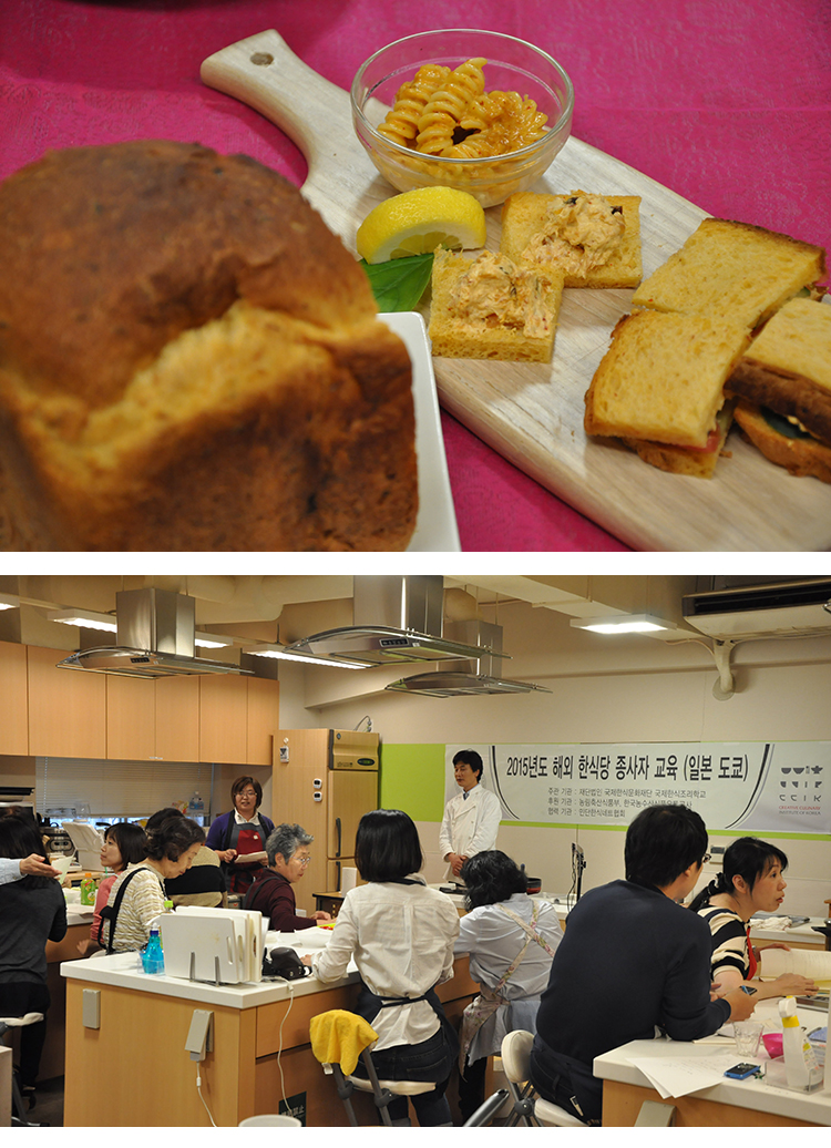 今年は、日本における韓国料理の礎を築かれた慎月順(シン・ウォルスン)先生を始め、全州国際韓食調理師学校のチョン・ヘジョン校長先生、和食料理人であり、韓国料理研究家の井上博幸先生、世宗・インターコンチネンタル・新羅ホテルの厨房でお仕事をされ、駐米韓国大使館では調理長をされたというチョ・ヒスク先生など華麗なる講師の方々と一緒に正しい韓食の作り方や扱い方などを伝えて参りました。