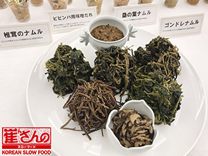 コンドレ、ワラビ、椎茸、桑の葉ナムルそれぞれの独特な風味や香りを味わう事です。